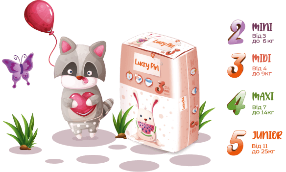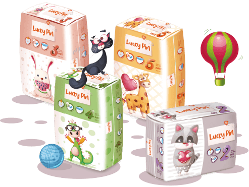 Lucky Pin - засоби для дбайливого догляду за малюками від народження. Серед асортименту продукції присутнє все, аби малюку було комфортно, а піклуватись батькам зручно та легко. Продукція Lucky Pin виготовляється відповідно до останніх розроблень у галузі гігієнічних виробів, має високу якість, є гіпоалергенною, без барвників та шкідливих речовив, а підгузки мають інноваційну технологю Air Laid, що робить їх тонкими, а поглинальний шар — ефективним. Дитина може гратися без обмежень у рухах та залишатися сухою протягом дня.